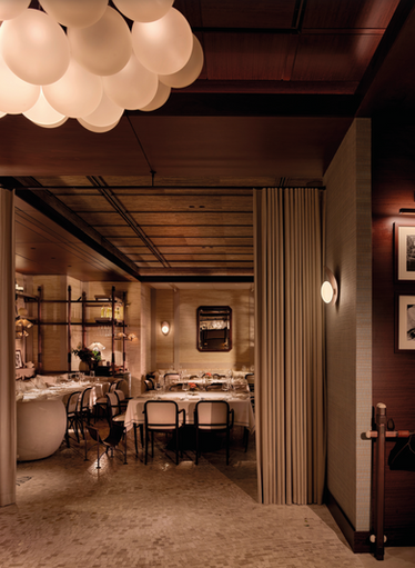At the heart of the space, the centrally positioned bar functions as both a social anchor and a point of orientation. By maintaining uninterrupted flow, it becomes more than a functional element, articulating the restaurant’s identity through light, material, and form.